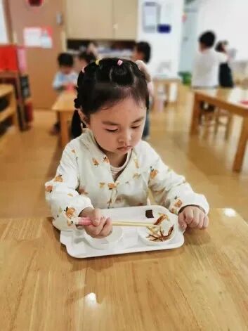 加深孩子对茶的制作工艺的印象,锻炼孩子的手眼协调能力,认知能力。 数学区启蒙时光·蒙特梭利01数花